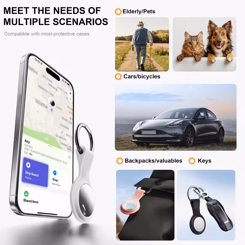Ky gjurmues inteligjent i përshtatshëm për Apple AirTag ju lejon të lokalizoni dhe ndiqni me saktësi sendet tuaja personale. Mund ta vendosni lehtësisht kudo — në makinë, portofol, çelësa apo sende të tjera të vlefshme — dhe ta shikoni pozicionin e tyre në kohë reale përmes iPhone-it tuaj. Me funksion lokalizimi të shpejtë me një klik dhe sinjal tingulli, ky pajisje ju ndihmon t’i gjeni sendet pa mundim dhe pa kosto mujore. Perfekte për këdo që kërkon siguri dhe kontroll mbi gjërat e tij të rëndësishme.