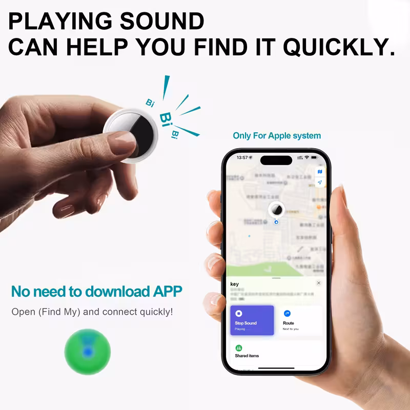 Овој паметен тракер е компатибилен со Apple AirTag и служи за прецизно следење и лоцирање на вашите лични предмети. Можете лесно да го поставите каде било — во автомобил, паричник, на клучеви или други вредни работи — и преку вашиот iPhone да го следите нивното местоположение во реално време. Со функција за брзо лоцирање со еден клик и звучен сигнал, овој уред ви овозможува да ги најдете вашите предмети без никаков напор, без потреба од месечна претплата. Идеален е за секој што сака сигурност и контрола над своите важни работи.