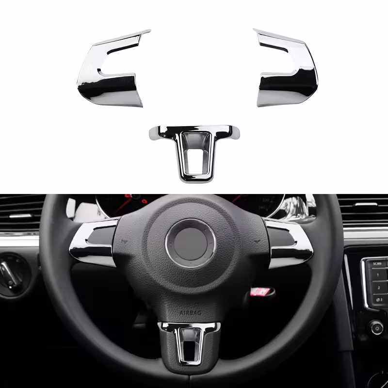 Сјаен хром капак за волан – компатибилен со Volkswagen Golf 6 и други VW модели (2009–2012).