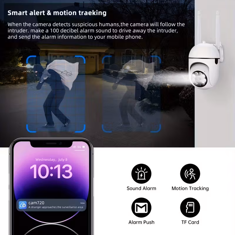 Siguroni shtëpinë dhe zyrën tuaj me kamerën inteligjente WiFi. Lidhje e shpejtë me telefon për monitorim në kohë reale, cilësi e lartë video dhe dizajn kompakt për vendosje kudo. E përshtatshme për mbikëqyrje të fëmijëve, zyrës apo hapësirave të jashtme. Thjesht e instalueshme dhe praktike për siguri të plotë.